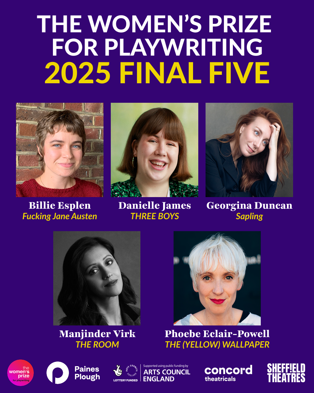 The Women’s Prize for Playwriting – produced by Ellie Keel Productions and Paines Plough – announces the five finalist scripts for its 2025 Award, selected from a record-breaking 1,275 submissions.